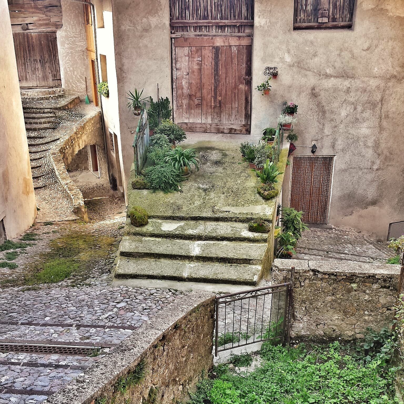 Seguendo con lo sguardo il dito di Marco, non riusciamo a credere che dovremo arrivare così in alto dove indica. Marco è la guida della Scuola Italiana Sci Dolomiti Brenta che incontriamo di buonora a San Lorenzo in Banale, ai piedi delle Dolomiti di Brenta e che per due giorni ci accompagnerà fra le montagne, 800 metri più in alto di dove ci troviamo, all'interno del Parco Naturale Adamello Brenta. A pochi chilomteri dal Lago di Molveno, questa località, riconosciuta fra i Borghi più Belli d'Italia, rappresenta un noto punto di partenza per molti percorsi che si diramano sulle Dolomiti e per questo rientra anche fra le principali porte di accesso al Parco. Nel saliscendi di stradine, si affacciano case restaurate con cura e tirate a lucido, ma che mantengono l'autenticità e lo stile del luogo. Molte di quelle che un tempo erano stalle o modeste abitazioni contadine oggi si sono trasformate in eleganti e moderne dimore frutto di un restauro altamente conservativo. Alcune passerelle a "scivolo" che collegano gli ingressi delle case alla strada sono ancora nella stessa posizione e della stessa forma di un tempo, seppur si veda che sono da poco restaurate. Rappresentano una testimonianza dell'economia di questa zona di circa due secoli fa, quando le slitte, scivolando sui ciottoli levigati erano l'unico mezzo per spostare agevolmente qualsiasi tipo di merce in grandi quantità.