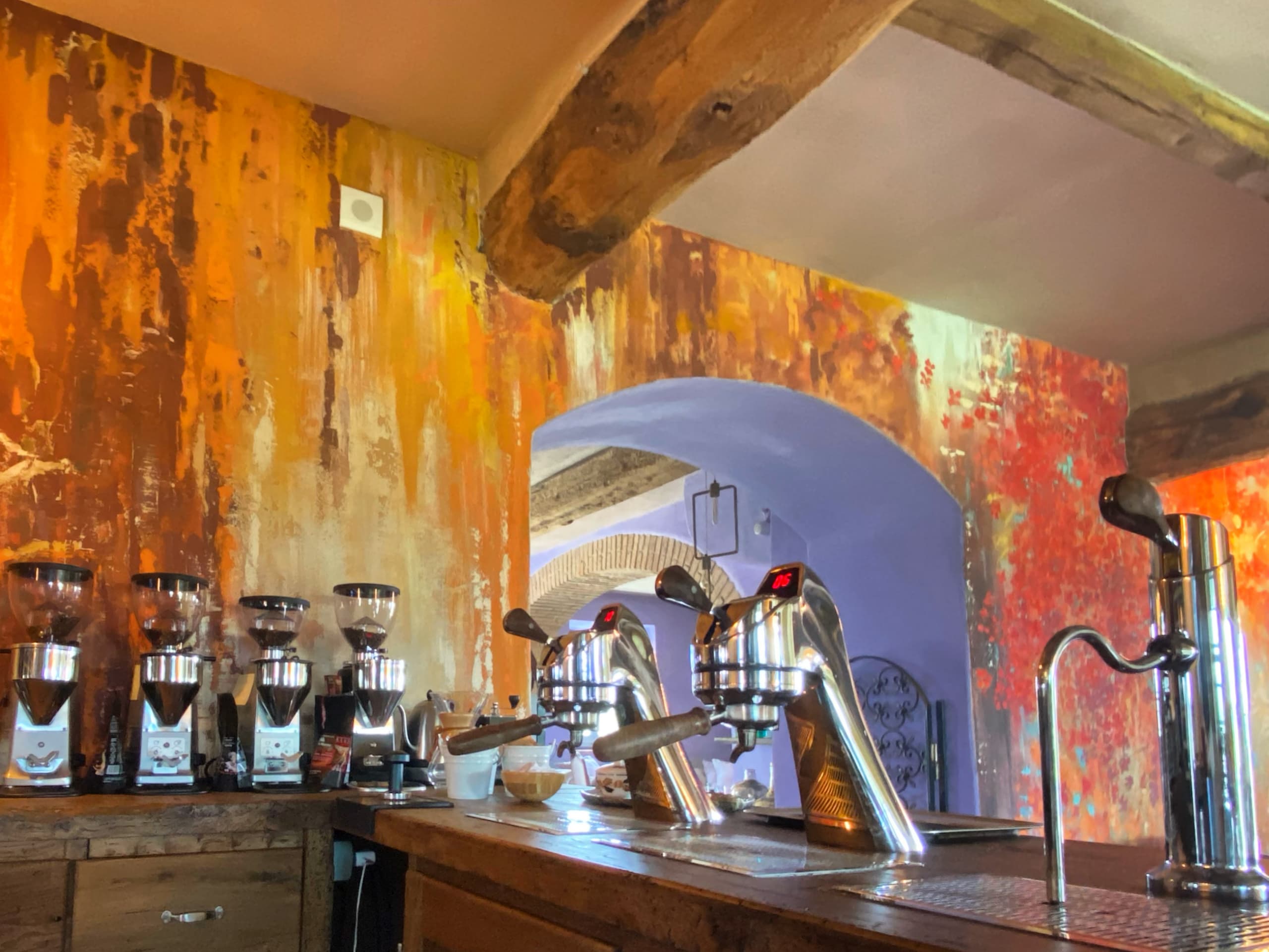 Affianca l’avveniristica Modbar, ultimo modello di macchina da caffé Marzocco, una contenuta ma ben costruita carta dei caffè che include quattro proposte. Geisha, un Colombia, 100% arabica coltivato a 2.000 mt. il più acido di quelli in carta, con aroma di gelsomino, zenzero e caramello e dalla persistenza forte.
