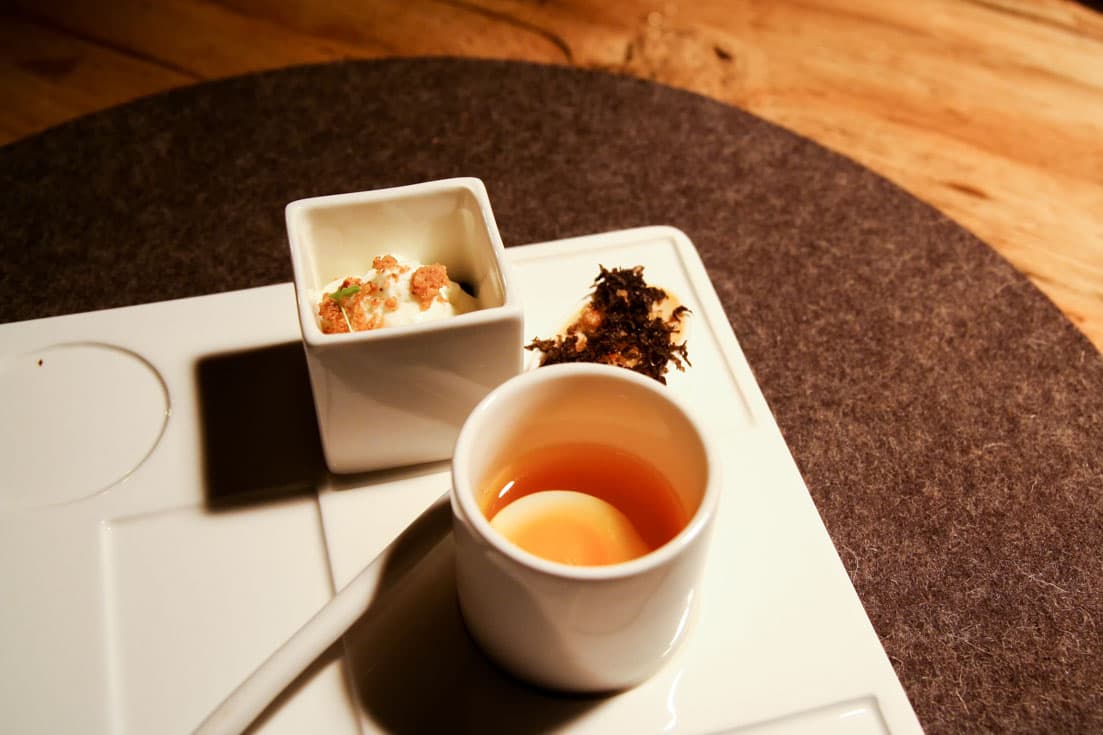 In punta di piedi, da quasi tre anni, è entrato nella grande famiglia dell’Hotel La Perla di Corvara chef Nicola Laera, altoatesino, per più di un lustro allievo di Norbert Niederkofler e fra i più giovani stellati del 2013, appena trentenne. Alla Stüa de Michil appronta la sua intelaiatura stilistica fra territorialità, sperimentazione e sostenibilità in un ambiente di una eleganza imperitura, fra legni antichi, merletti e sofisticate composizioni floreali.
