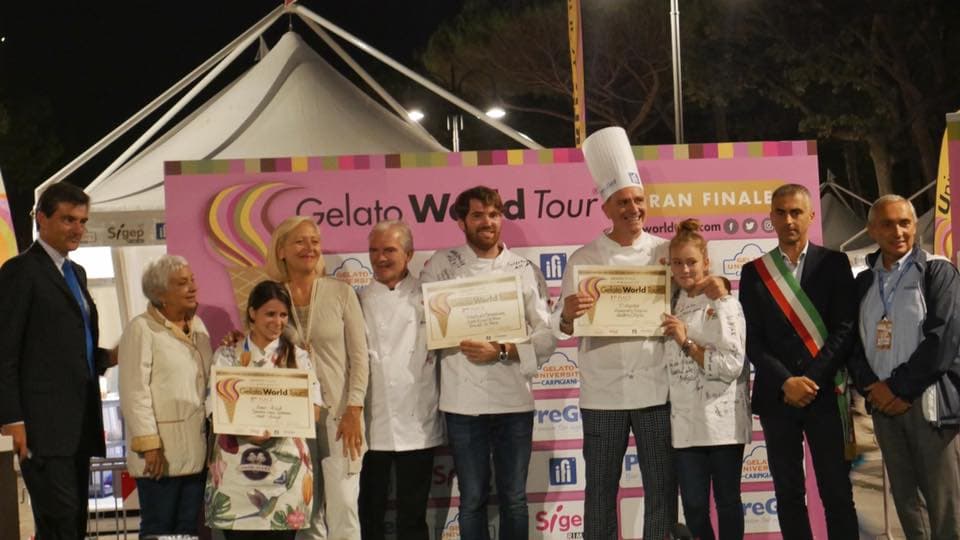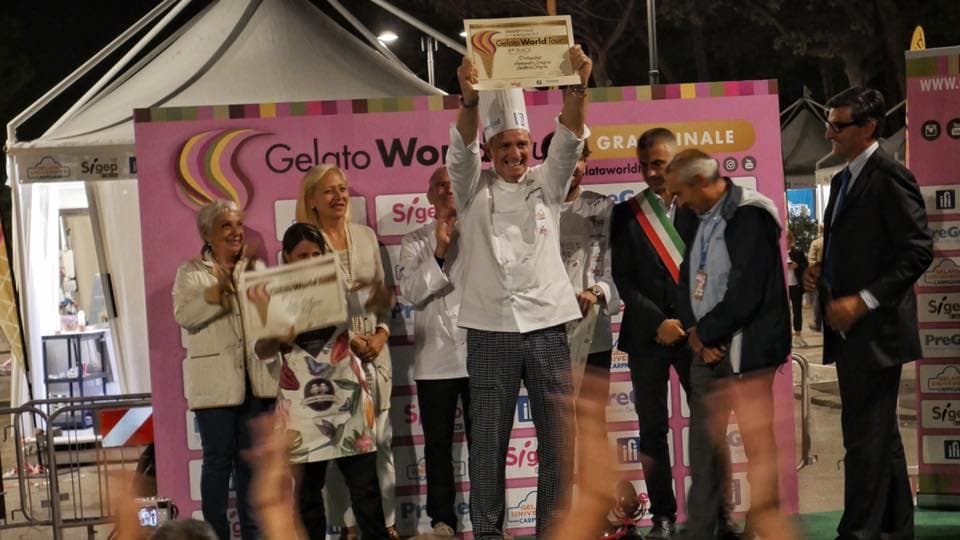 Arriva dall’Italia il miglior gusto di gelato al mondo incoronato durante la serata del 10 settembre 2017 a Rimini per la Finale Mondiale di Gelato World Tour organizzata da Carpigiani Gelato University e Sigep – Italian Exhibition Group. Il nome è semplice tanto quanto il gusto è prelibato: “Pistacchio” ed è l’unione di tre qualità di pistacchi tutti siciliani, due di Bronte e uno dell’agrigentino. L’ha creato l’artigiano Alessandro Crispini della gelateria Crispini di Spoleto (Perugia), che per esaltare ancora di più il gusto ha aggiunto il pregiato fior di sale di Cervia che apporta al gelato una straordinaria sapidità. La pioggia non ha fermato l’evento più goloso al mondo dedicato al gelato con un laboratorio a vista in cui sono stati prodotti 2500kg di gelato fresco in tre giorni e 50.000 visitatori registrati.